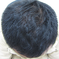 内服薬を6ヶ月、ダーマローラーによるHARG療法を1回施術後のお写真です。内服薬だけで頭の中央部分にうっすらと髪が生え始めました。さらにHARG療法を追加することでしっかりとした毛が生え始めたのがお分かりいただけると思います。